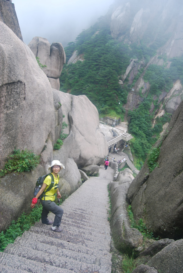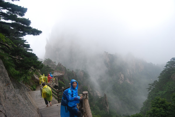 索道上去后还要走好几个小时才能到宾馆,背包里两天的食物和衣服, 不过雨雾中的黄山还是特别美! 累并快乐着!