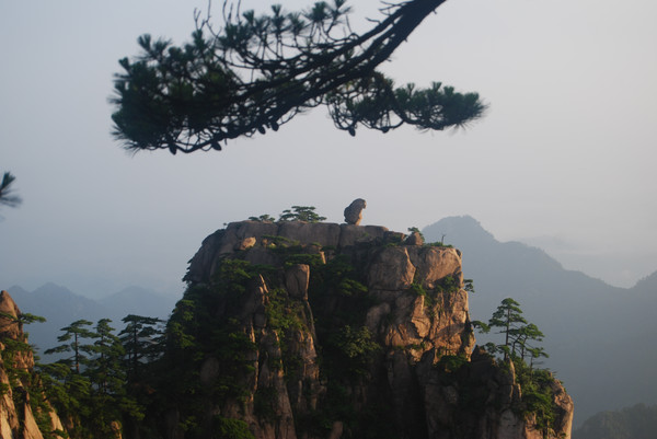 猴子观海 :在北海景区,狮子峰北一座平顶的山峰上,有一巧石,如猴蹲坐,静观云海起伏,人称“猴子观海 “。猴子观海奇石本身所在的山峰,游人不能登攀,观看的最佳地点在狮子峰