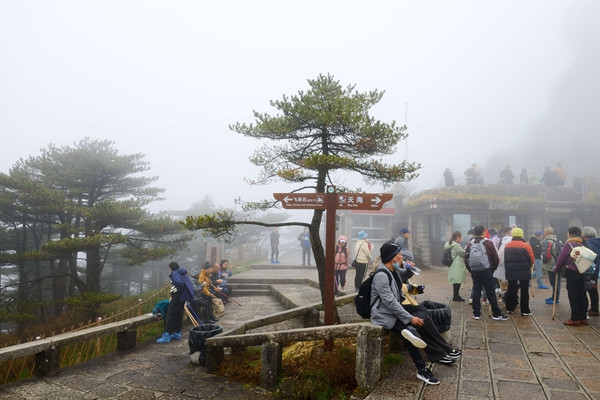 10点多我终于乘坐客运班车来到汤口镇(黄山风景区入口),找到了×程网订的程×精品旅店(旅店就在黄山风景区换乘中心入口旁,很方便)。前台小哥为我安排好房间后,知道我马上想上黄山,他劝我,今天上去是浪费钱,既跑冤枉路也无法看到景色。他叫我第二天再上,一天走完,这样省了二百多元(过后证明他是对的)。