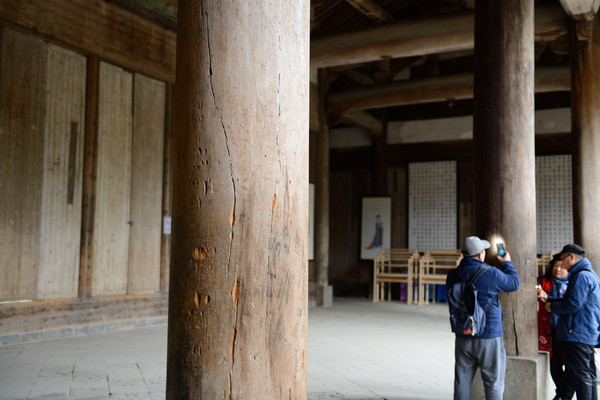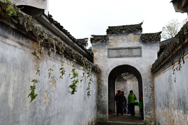 村子里面游客很少,见到游客会有几个妇女围上来,问需不需要人解说(如果你爱好研究,最好花20元请一位)。我跟着一个旅游团,按照导游标志进到村子里。村里街巷全部由花岗条石铺筑,古宅鳞次栉比、纵横相接、青墙黛瓦、高低错落、长街短巷、犬牙交错、宛如迷宫,有“十游九迷”之说,就是说10个游人进入村子有9个会迷路。