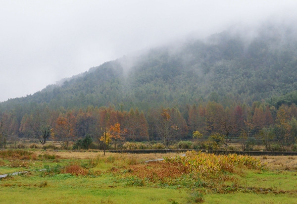 阴天,小雨,温度:山下8-12℃,山上5-9℃,有点冷。