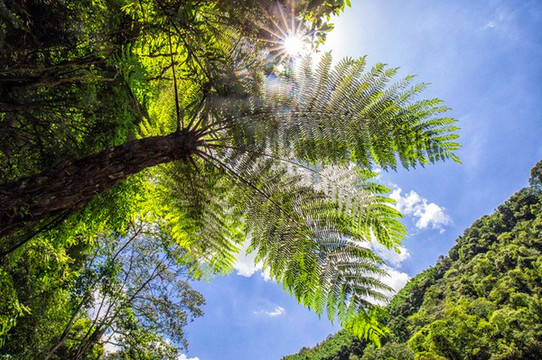 沿途植被繁茂,生态系统完整,负氧离子多,特别是享有“活化石”盛誉的桫椤树高大茂密、郁郁葱葱。桫椤是一种侏罗纪起就存在的蕨类植物,是全球现存唯一的木本蕨类植物,形如巨伞,状若华盖,树形优美,苍劲挺拔,四季常青,能长到6米甚至更高,其种群在一亿八千万年前与恐龙同生共荣,是恐龙的主要食物,后来随着地球变迁恐龙绝迹,大多数桫椤树林也遭灭顶,可是少数桫椤却奇迹般地在有限地域留存下来,成为“最后的侏罗纪生命”,幸存的“古生物活化石”,是国家一级保护的珍稀濒危植物,而这“最后的侏罗纪生命”目前在世界上最具规模、保存最为完好的地方就是赤水,赤水因而也被人称为“中国的侏罗纪公园”,现存桫椤约有6万株,走在其中,仿佛又回到了遥远的恐龙时代(部分借图)。