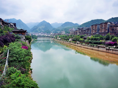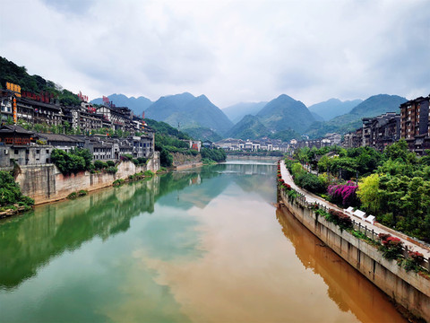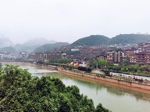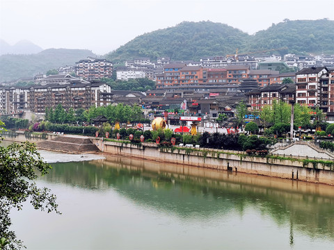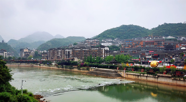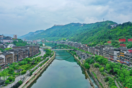 习水土城是因航运而兴、因四渡赤水而驰名的古镇,距今已有2100年,居民在改建街房时,发现大量用泥土建房筑城的墙基,“土城”由此得名,古镇三面临水,北面环山,古镇依山而建,水绕镇而流,是古时“川盐入黔”的重要码头和集散地(航拍借图)。