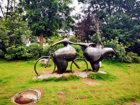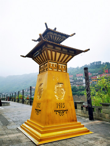 1915广场上屹立着一组巨大的雕塑,是“茅台酒一摔成名”的经典再现,雕塑仿照当时摔碎的酒瓶子,圆形的土黄色瓶身,中间有传统镂空设计,碎片散落在地。1915年茅台酒参加巴拿马举行的国际品酒会,当时酒会上参展的酒琳琅满目,而作为中国国酒出席的茅台酒却因为包装朴素受到冷遇,眼看无人赏识,中国代表心生一计,到人群最密集处,假装不小心把酒瓶摔破在地,顿时酒香四溢,招揽了无数客人,故此茅台酒一摔成名,享誉世界,逐渐成为了中国第一名酒。