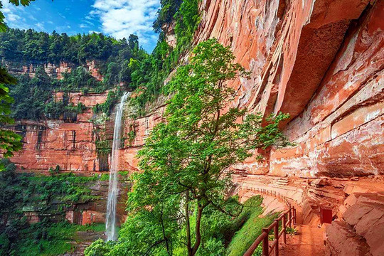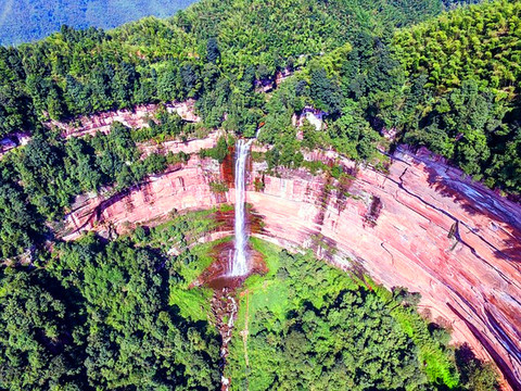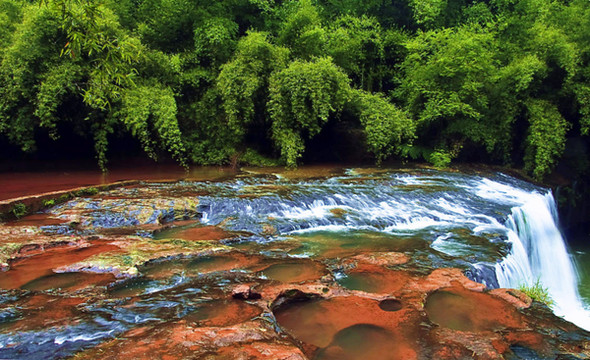 走进赤水,仿佛走进了红色的山水秘境,这里2005年被《中国国家地理》评为中国最美丹霞地貌之一,2010年中国丹霞地貌成为世界自然遗产,其中就包括赤水丹霞,是青年早期丹霞地貌的代表,全国面积最大、发育最美丽壮观的丹霞地貌,谷深坡陡,溪河纵横,植被覆盖率高,被誉为“绿色丹霞”,素有"千瀑之市"、"竹子之乡"、"桫椤王国"等诸多称号,走进赤水丹霞旅游区,艳丽鲜红的丹霞赤壁,拔地而起的孤峰窄脊,仪态万千的奇山异石,优美的丹霞峡谷与绿色森林、飞瀑流泉相映成趣,不愧为“赤水丹霞冠华夏”。