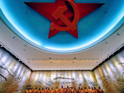 时针回拨到1935年,一场关乎党和红军生死存亡的会议在遵义召开,中国革命的历史在此转折,正逢建党百年,前来参观遵义会议会址的人群络绎不绝,首先映入眼帘的是门楼上悬挂着毛主席1964年题写的“遵义会议会址”六个字的黑漆金匾,毛体金字纵横驰骋,道尽了伟大转折带来的酣畅淋漓,这可是中国诸多革命旧址中罕见的毛泽东亲笔手书。走进会址,中西合璧的两层镶红青砖小楼古朴大方,主楼与跨院之间有一座青砖牌坊,牌坊上方用碎蓝瓷镶嵌着“慰庐”二字,另一面有“慎笃”二字,楼前的百年古槐枝繁叶茂,这里的一砖一瓦、一枝一叶都承载着党和军队从挫折走向胜利、从迷茫走向光明的厚重记忆,见证着决定命运的伟大历史时刻,也仿佛在提醒我们:如果说红军长征是一部史诗,那么遵义会议就是其中最为炫丽的篇章。在遵义会议会址旁边,还新建有一栋建筑面积近2万平米的遵义会议陈列馆,陈列馆里收藏了大量文物,并配合雕塑、图片、灯光、多媒体等各种现代科技,用“以战略转移,开始长征”、“遵义会议,伟大转折”、“转战贵州,出奇制胜”、“勇往直前,走向胜利”、“遵义会议,光辉永存”等五大部分突出遵义会议的主题,详细描述红军长征转战贵州的史迹,特别是陈列馆大厅里的一组群雕大气磅礴,他们正是当年遵义会议的二十位参会人员群像。