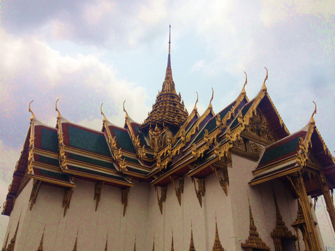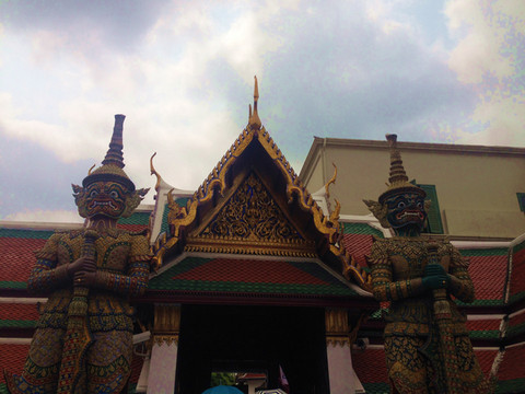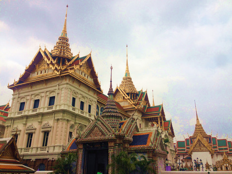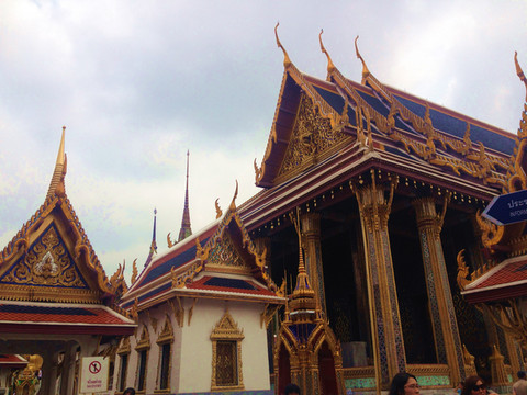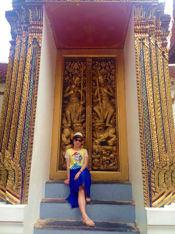 3月20日,去了大皇宫、玉佛寺,门票500B/人,里面对服装有要求,不能穿无袖衣服,裤子裙子要过膝盖,当然要是你穿错衣服了也不用着急,那里可以免费租借。去的那天刚好阴天,对游玩来说是个好天气,但拍照的效果就不太好,看别人拍的大皇宫都是金灿灿的,我拍的就没那么金碧辉煌。去北京一定会去故宫,去曼谷也一定会去大皇宫,道理是一样的。大皇宫的建筑还是很有泰国特色的,但规模比起故宫要差远了,中国人喜欢讲排场是由来以久的。大皇宫出来后,坐TUTU去了考山路,考山路是背包客的聚集地,有很多廉价旅馆,非常多的酒吧,晚上人气很旺,我们大白天的过去,也就没什么特别好逛的了,建议考山路要晚上去玩。午后回酒店小憩,老公有点小感冒,本来想晚上逛逛湄南河的,就临时改成坐游船夜游,因为是临时的决定,携程和淘宝上问了几家都说当天预订不了,后来还是在上次买攻略的那家订到了,而且还是露天顶层,赞一个。湄南河上有五艘游船,各有特色,我听了店主的建议,订了湄南之星公主号,据说是曼谷本地人喜欢坐的,性价比比较高,上面的自助晚餐品种很丰富,歌手表演很卖力,现象气氛不错。听着演唱,吹着晚风,享受美食,155RMB/人的价格还是很值的。