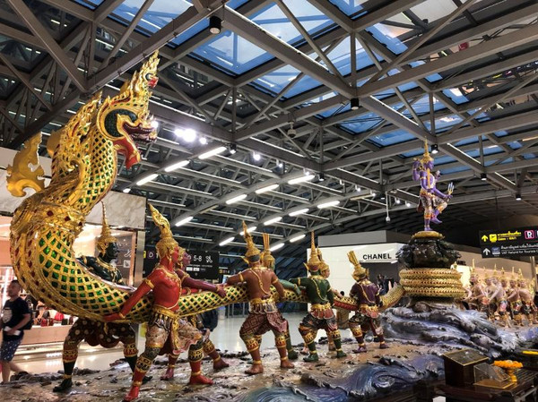 经过一个小时左右的飞行很快来到曼谷机场,由于苏梅岛到曼谷的航段属于国内航线,要在曼谷出关,所以要在曼谷机场提取行李后到国际出发再次值机。曼谷机场再次展现了泰国人民的慢节奏,行李出来慢的出奇,最后根本没有时间在曼谷机场再享受一顿泰餐了。