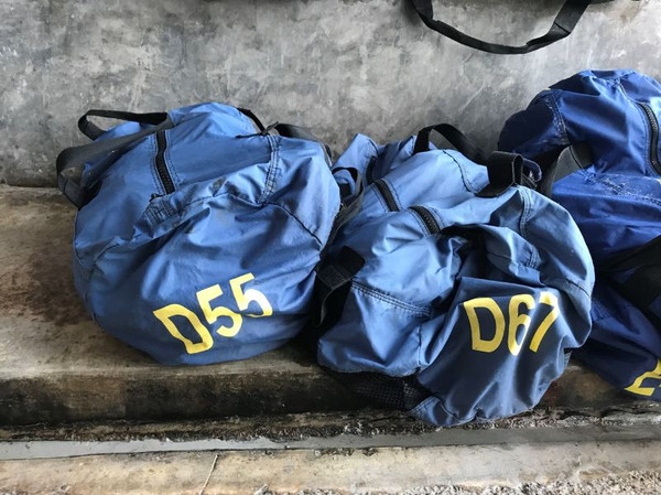 这一天7:15就来到餐馆处集合,领装备准备坐船出海,每人一个有编号的装备袋,存放适合自己尺码的BCD、脚蹼等装备,以免弄错。