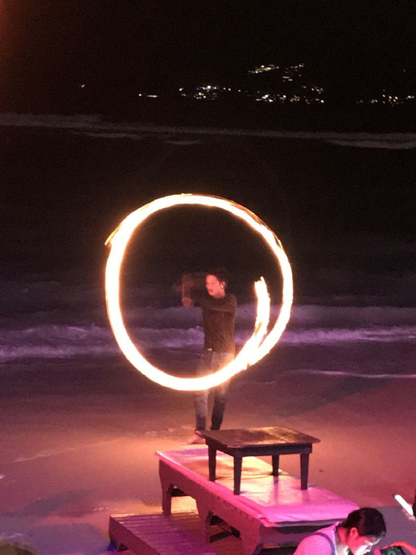 如果你住在查汶大街上的酒店,一定不要错过每天晚上9:30 沙滩酒吧Ark Bar的火把表演。你可以免费观看,也可以找个靠前的位置坐下,点上一杯饮料或啤酒就可以了。一定要等到最后的节目“海上高台火把舞”,非常漂亮,看上去有点像国内的打铁花。