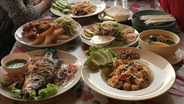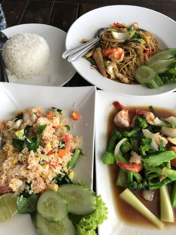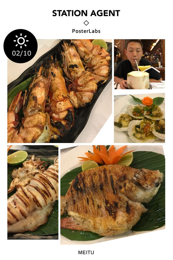 出发前看过很多游记,网友们推荐了很多吃海鲜的餐馆,不过多数是大排档类型,如米特拉海鲜大排档、Green bird、Nathon集市小吃、CRAB大螃蟹餐厅……不过,实地考察后,虽然价格要低一些,还是不放心海鲜的质量,最后并没有选择,而是在查汶大街北端的Samui Seafood,一个像是热带森林般的餐馆。烤龙虾、烤鱼、烤虎虾、椰子海鲜咖喱…… 味道非常棒,去吃过两次,所以价格还说得过去。