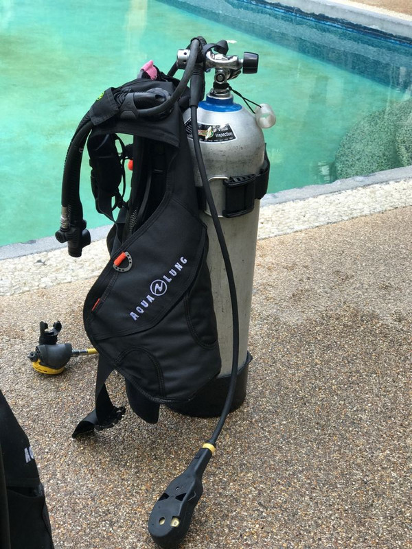 第一潜结束上船后要把装备从气瓶上卸下来,再安装到一个新气瓶上为第二潜做好准备。我们的第二潜是在涛岛西北部的Twin Rock,下潜到了11米,水下时间36分钟,同样是练习D2在泳池里的技巧。