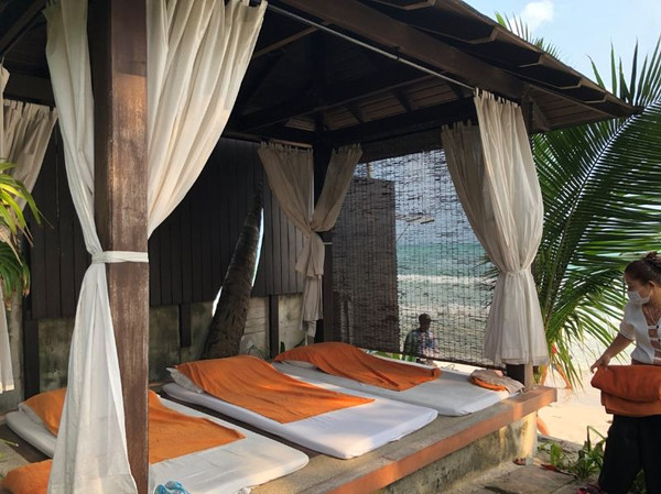 泰式按摩(马杀鸡)是到泰国旅游必做动作。尝试了当地最大连锁店Let's Relax,也尝试了酒店里的按摩。如果是沙滩按摩,因为不占房间,不需要换衣服,所以价格最便宜。Let's Relax的环境比较清新,而沙滩按摩则更回归大自然,听着海浪声、吹着海风按摩还是比较享受的,我更喜欢沙滩按摩。