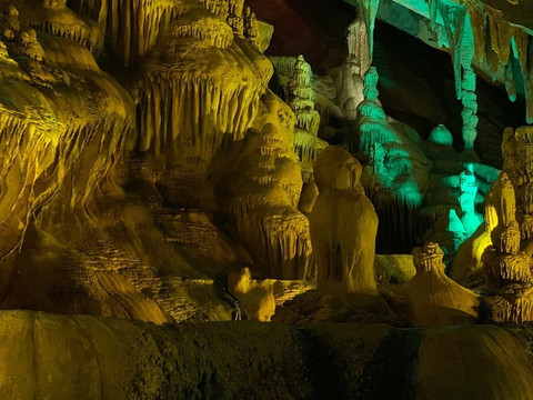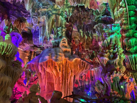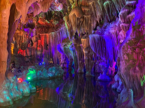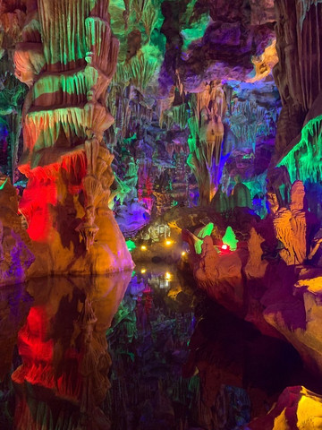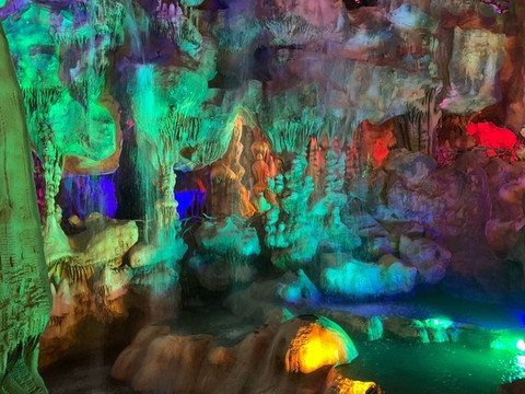 中华洞天将天然和人工的天然混合在一起,再加上多彩灯光,30余米高的石笋石柱数十个,看起来还是非常漂亮的。