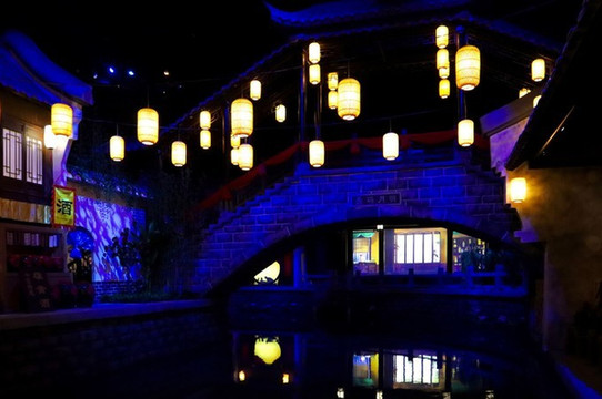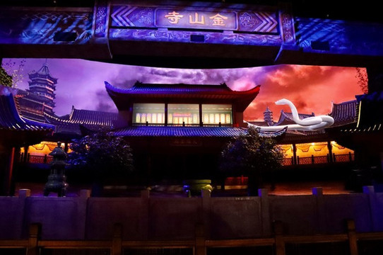 走进这个室内,仿佛就来了江南水乡,游客都是乘坐游船沿着轨道,穿越到西子湖畔,左右两边真人和高科技交替着演绎白娘子怒斗法海的过程,最后亲身体验水漫金山寺的滔天巨浪,站在第一排的我被瀑布的水花给打在脸上,真实地无以复加。
