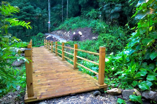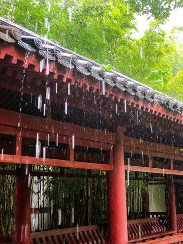 背靠浓郁山色,围绕碧幽的竹林,清澈的山泉水汇集成河日夜奔流不息,带着水儿击打石块的声音,清脆、动人……
