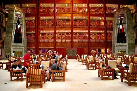 棋牌室与游客就餐的豪包区就建在水的周围,巧妙的融合了人与水的亲密结合。
