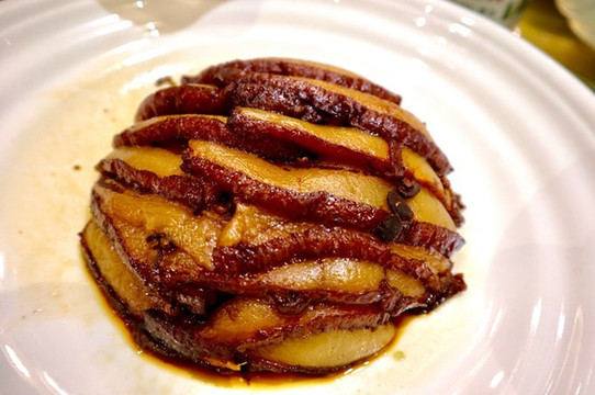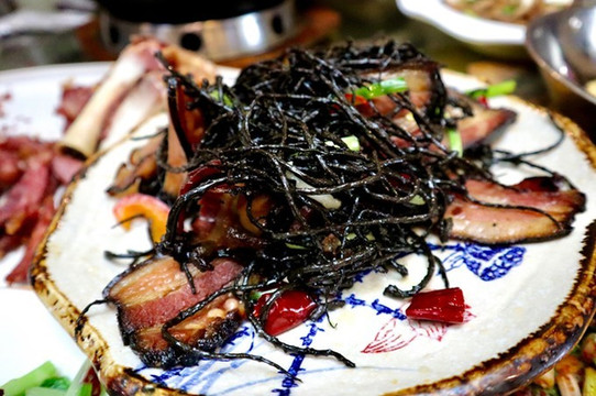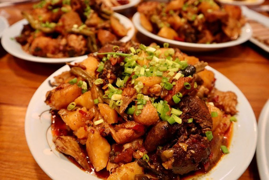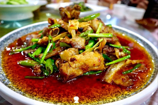 每人一小碗色泽丰富的红烧肥肠,下饭,夹得干干净净。据说只有江油的红烧肥肠才叫“江油肥肠”。