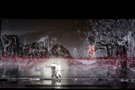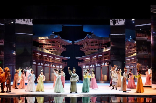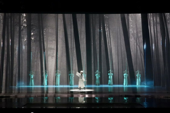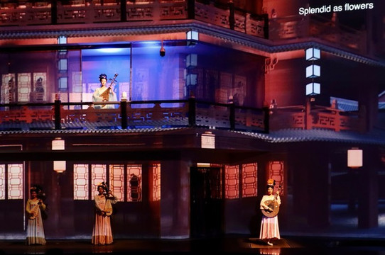 《梁祝》剧场可同时容纳上千名游客,演出过程中真人表演与光影特效虚实结合,四面通透的舞台上凭空出现逼真的风、雪、雷、电等天气变化,带给游客如临其境的沉浸式体验。在演出的尾声,梁山伯与祝英台翩翩起舞并双双化蝶,凄美绚烂。伴随深情的梁祝旋律,仿佛穿越时空,亲眼目睹了这段千古绝恋。