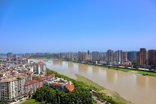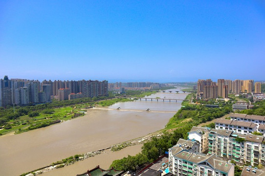 15楼就是最高层楼,璀璨越王楼顶楼,360度俯瞰整个绵阳市。这里有山护城,有三条江水穿流而过。