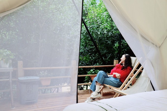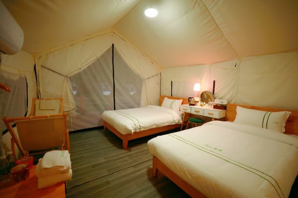 这里的民宿有很多家,每一家的形态都不一样,有帐篷,有霍比特人房,我们住的是山顶上的帐篷房。