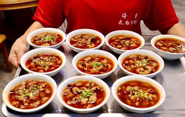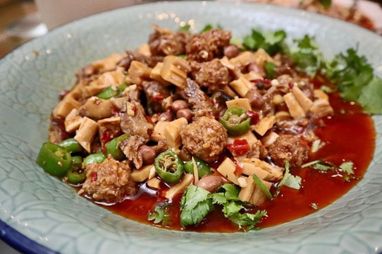 来到江油,必打卡美食就是江油肥肠。中午,我们选择的就是这家在当地名气很大的诗香太白肥肠馆。门口这恢弘的气势,一共2层楼,每层楼面积都很大,大中午人气爆棚。