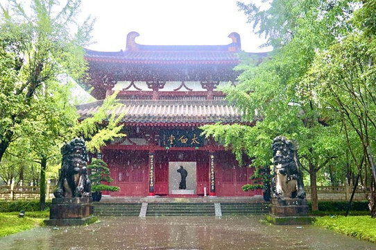 太白堂是李白纪念馆主要纪念设施之一,位于清莲池北岸,为唐代殿堂式风格。它采用了中轴对称结构,堂内的李白像由中国著名雕塑家、清华大学美术学院教授李象群创作。