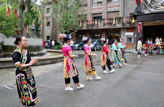 九皇山景区猕猴滑稽 人熊共舞表演,一天6场;早上2场,中下午4场。九皇山景区环球飞车特技表演,一天4场,免费看哟。除此之外,后山还有羌族民俗婚礼表演,一天1场12点,高空钢丝秀表演一天4场,还有百鸟园欢乐表演剧场,一天六场。要看完真得赶场的呢。