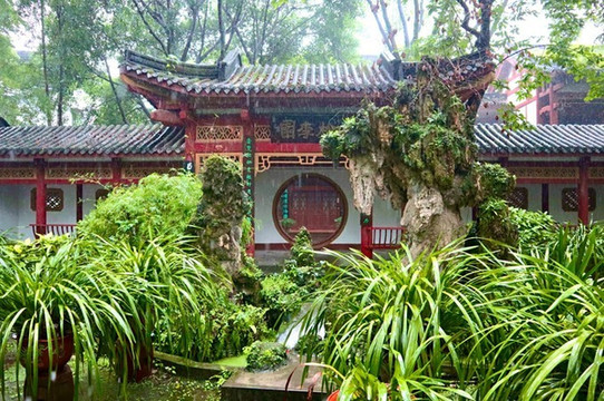 “诗苑”位于杜甫堂左侧,是李白纪念馆的精品陈列室所在地,为二层建筑。这里集中了李白纪念馆半个世纪以来文化收藏之精粹,展示有明代仇英、祝枝山、杨慎、王守仁,清代石涛、上官周、翁同和,近现代张大千、潘天寿、林散之、于右任、谢无量、傅抱石等名家的书画作品。