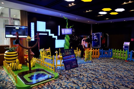 最让我觉得难忘的是这个酒店针对亲子群体的硬件设施,那才是我看到种类,空间,设施最多的酒店。就在一楼左手边这一排走过去,N个房间,不同的亲子游乐体验,是一个超大型的儿童游乐园: