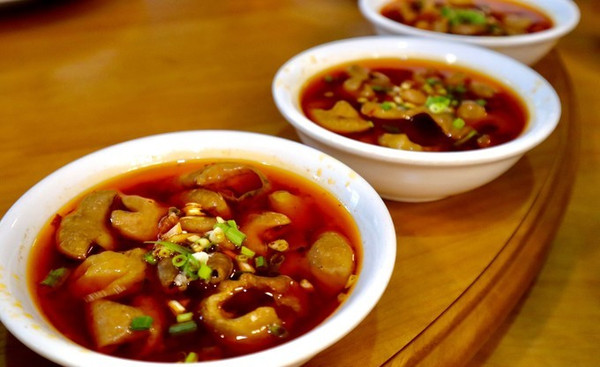 江油肥肠:色泽黄亮,味道香醇,吃起来柔嫩可口,肥而不腻。江油本地人习惯的一种生活方式:一碗肥肠,一碗干饭,一碗漂着葱花的醋汤......完美!!