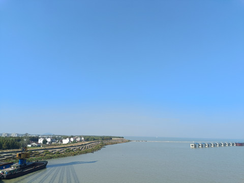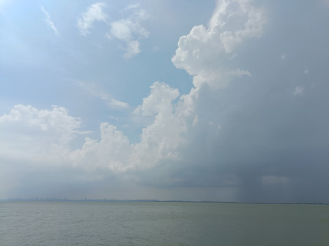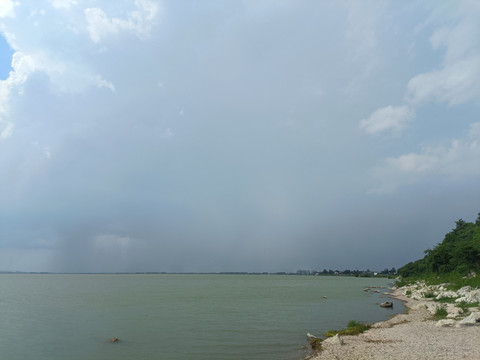 眺望滨湖方向,巢湖水质污浊,比乌云还要黑