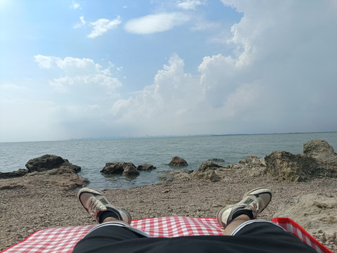 我还是第一次登上内陆湖水的沙滩。这地方有自己的特色