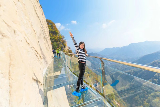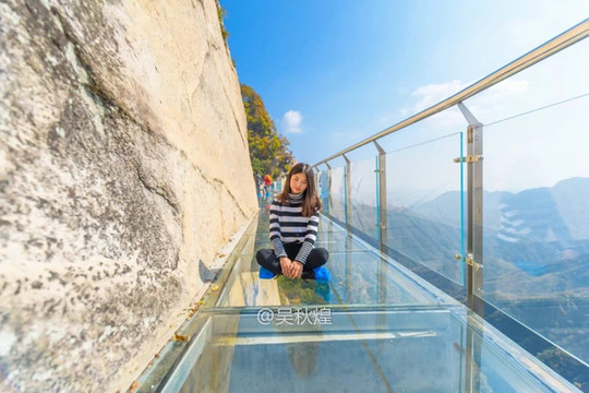位于海拔一千余米的悬空玻璃栈道,全部采用透明玻璃铺设。俯瞰脚下,云雾飘渺,深不见底;胆大的姑娘,旅行中获得的体验会更加丰富,人生的中可能会更多。