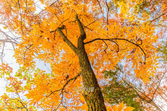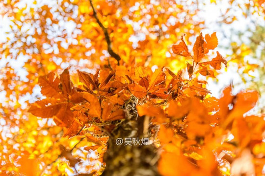 近看这一叶叶,如同串起来的铜铃一般,而远眺它们就像是给山川穿上了温暖的衣裳。一棵树最好的状态,莫过于春之绿芽嫩,秋之枯叶美。