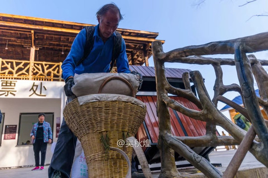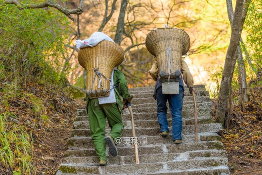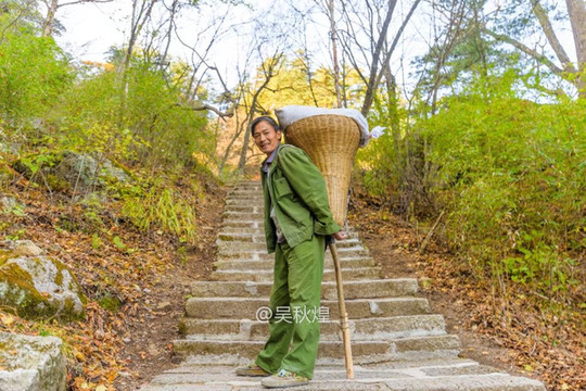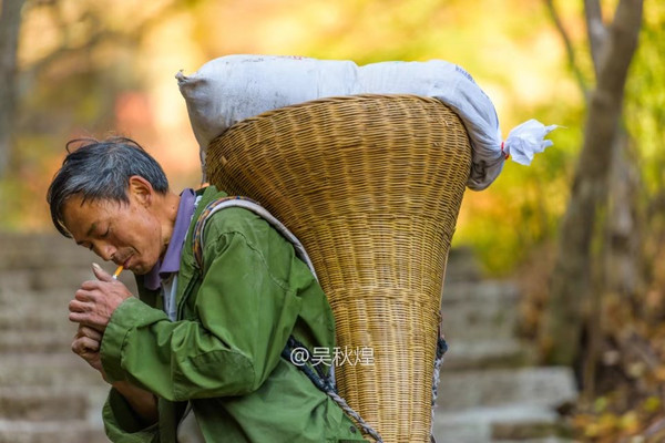 泰山有挑山工,白云山也有背山工。他们背一斤东西上山,只有2毛5,每次一背就是一百多斤,对于年龄65岁和59岁的老人,很辛苦,但笑容很亲和,给人温暖的力量。