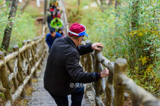 我佩服这样的老者,用蹒跚的脚步丈量着光明峰。