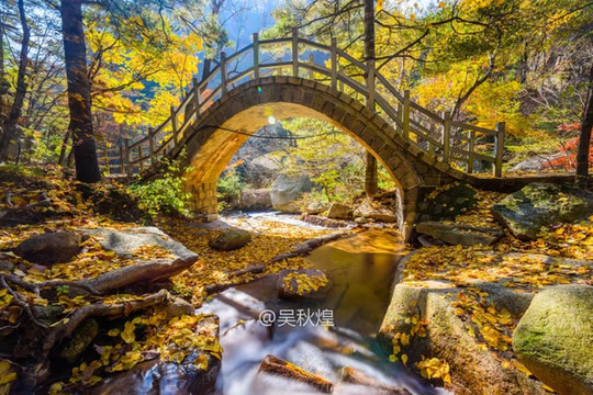 缓缓的走上小桥,凭栏闭眼,如同进入了仙境一般,你会觉得所有的美景都是为你而设,落叶铺满了大地,溪水静静流淌,光影恰到好处,如果有爱人相拥是不是一切绝美。