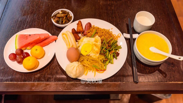 酒店的餐厅位于1楼的位置,很喜欢这种木质窗栏带给视觉的舒适感,仿佛伸手扶过它能感受到岁月的痕迹。