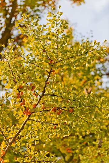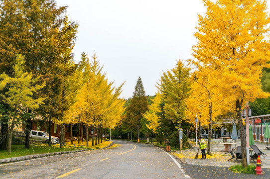 在景区中心广场长着密密麻麻的银杏树,虽然没有五马寺那么粗大,但是也非常美。银杏叶铺满了整个土地,像铺上的黄金地毯。任意选择一个角度,都是一幅绝美的风景。