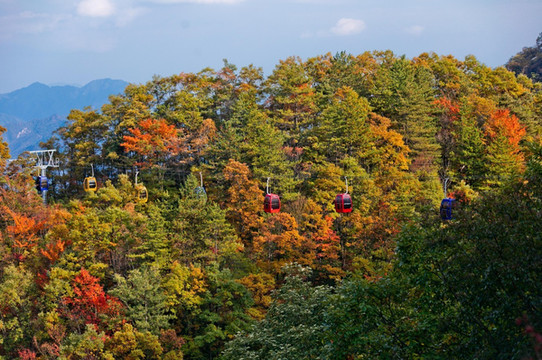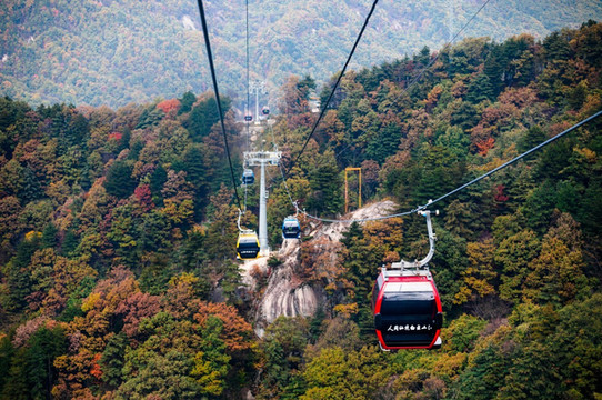 为了节省时间和减少体力,我们选择了较快的方式上山——乘坐玉皇顶索道上山。乘缆车上山时,坐在缆车里我们视野非常开阔,此时白云山那种层林尽染,叠翠流金的动人景象才愈发明显。