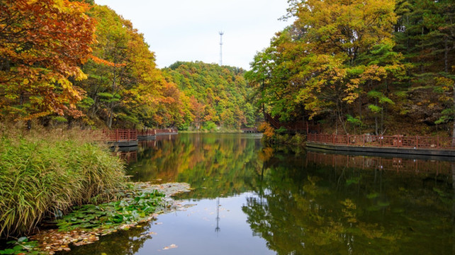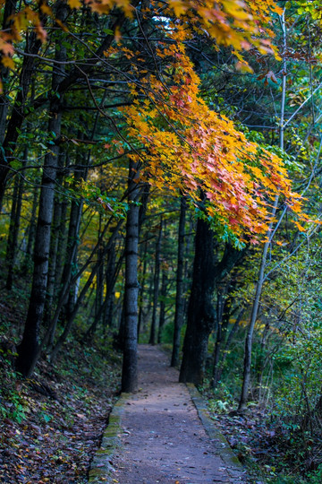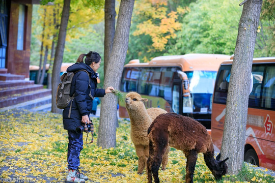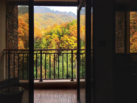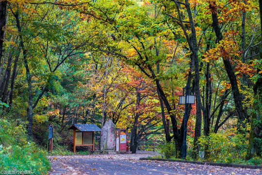 早上走出酒店,美景就扑面而来。一阵秋风吹过,色彩斑斓:红叶似火,黄叶闪亮,绿叶清新,它们互相掩映,互相嬉戏,意境宛如秋天的童话,美丽而神秘。