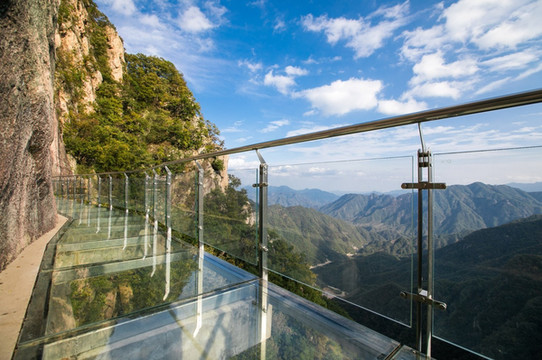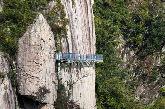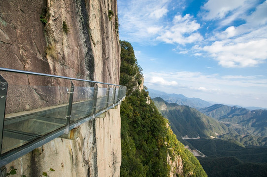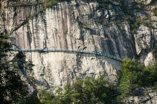走过九龙天桥再步行一段距离,我们前往另外一个极具挑战的景点,就是悬挂在悬崖峭壁上的玻璃栈道。