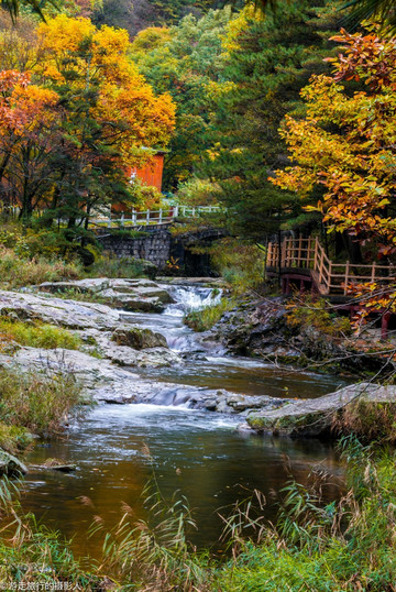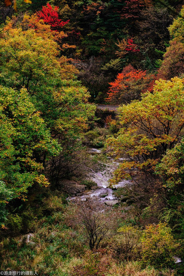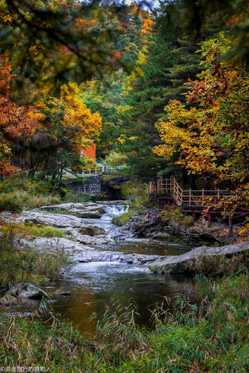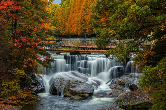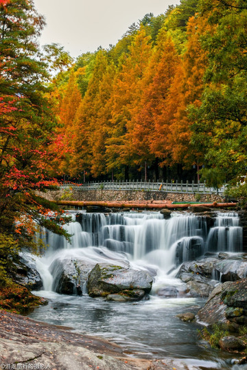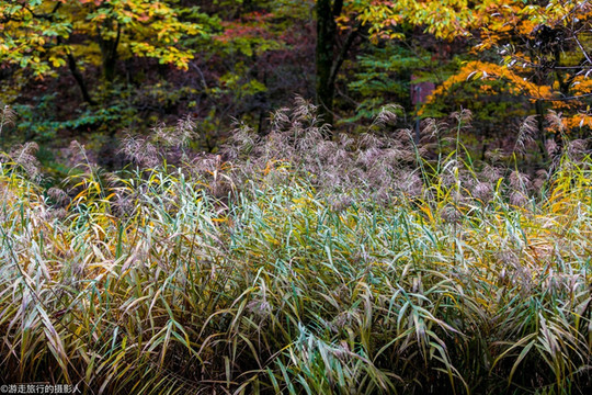 在芦花谷里漫步,是真正意义上的漫步,一路走去,什么烦恼都抛到九霄云外。沿着芦花谷旁的栈道前行,不时可以邂逅到各种小飞瀑,五颜六色的树木则让我们兴奋不已!