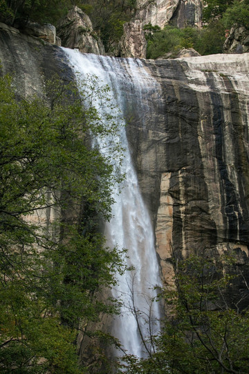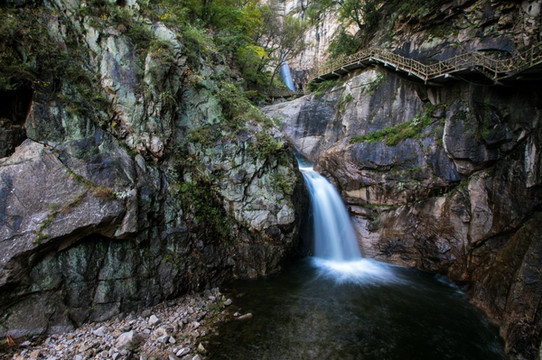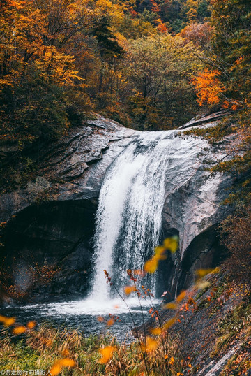 飞瀑像下凡的白龙向谷底奔腾而下,瀑布冲击山崖岩石升腾而起的雾气为山色增添了仙气!