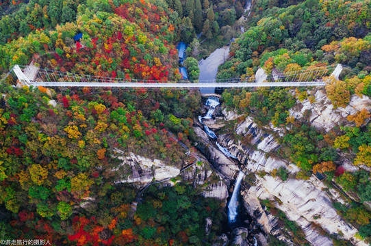 在摇晃的吊桥上行走,抬头便是迷人的瀑布,低头便是幽深的峡谷。青龙瀑布的身姿没有那么妖娆,就是简简单单,直直的一条。白云山的瀑布,各有各的姿态,各有各的特色。