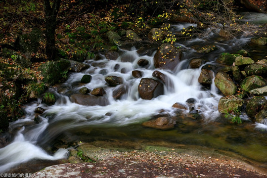 九龙大峡谷连接白云山芦花谷,是景区最美的断裂峡谷之一,峡谷内奇峰怪石林立,大小飞瀑众多,雨后烟雾缭绕之时,犹如人间仙境。深秋时节,不同颜色的草木沿着峡谷的山岭层层蔓延,让人由衷赞叹!这是一个吸引人目光的地方,也是一个谋杀相机快门的地方。