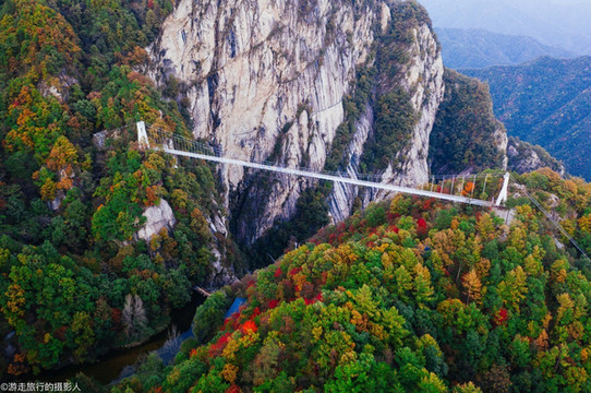 整个人仿佛浮在空中,走在上面晃晃悠悠的,非常刺激惊险,脚踩在玻璃天桥上,犹如立在云端。从九龙天桥上远眺,美景一览无余,恐高的小伙伴估计一眼就晕了,我有同行的小伙伴由于恐高就走了下面的栈道前往山对面。