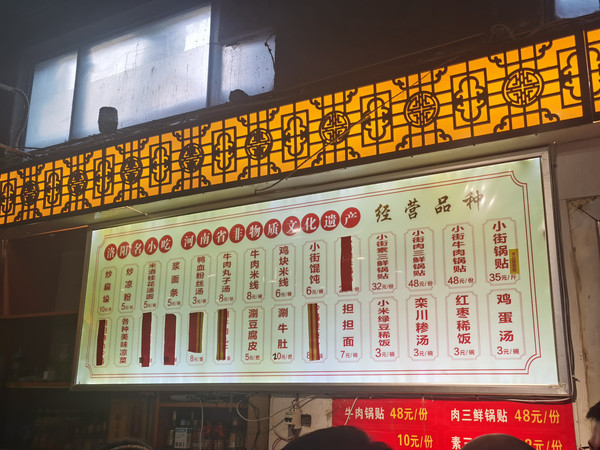 离开 洛阳 前的最后一餐,这里人超多,我们在二层点餐,锅贴只能一斤一斤的点,我们点了一份牛肉锅贴,一份小街锅贴,一份涮牛肚。推荐涮牛肉,酱汁里面有麻酱,更适合北方口味儿。