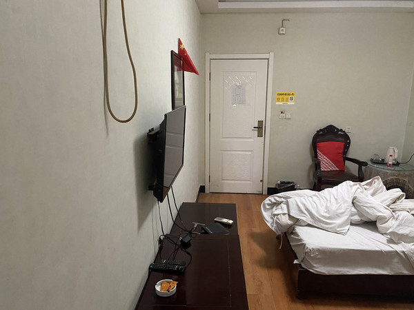 晚上回到酒店,房间已经准备出来了,刷身份证办理入住,还交了50押金。房间在三层,但是没有电梯。进门当时当时忘了拍照,面积还挺大的,就是设施稍微老旧了些。另外房间不太隔音,早上4四点多有人开始收拾东西 ,就不太能睡着了。另外他家的价格网上报价比实体价格贵,但是可以预定上,现场价格便宜,但是不确定有房,要12点以后才知道。所以早上临时过来的小伙伴肯能要白跑了。连住了连天,房间垃圾袋换了,但是洗漱用品和卫生纸没有给添加,虽然我们也并没有用吧,到那时感觉差点。不过地铁对面232一天,牡丹花期间,这这个价格也算可以了,毕竟远一点的7天都已经要500啦,所以还要啥自行车。